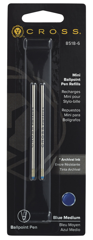 Стержень шариковый Cross для ручки Tech3+ Tech4, средний, синий (2шт); блистер, 8518-6