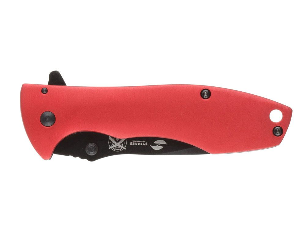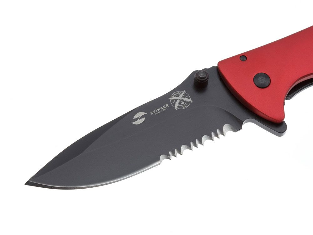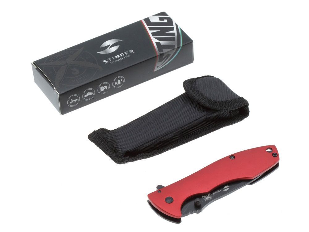 Нож складной Stinger, 80 мм, (чёрный), материал рукояти: сталь/алюминий (чёрно-красный), 441169