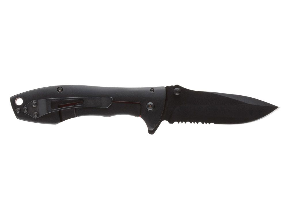 Особенности: лезвие с серрейторной кромкой, рукоять с клипом и отверстием под темляк