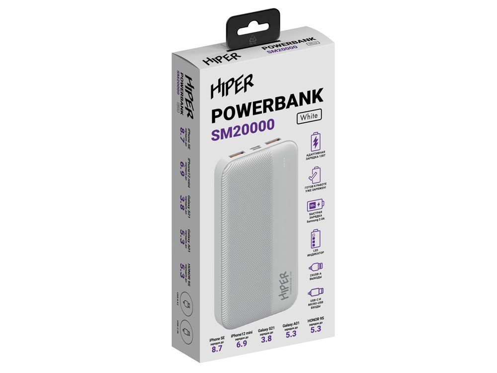 Портативный внешний аккумулятор SM20000 White, 521024