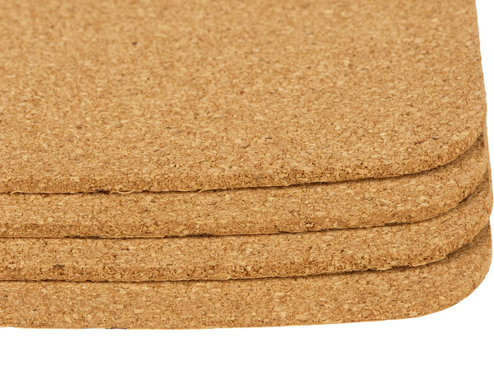 Двусторонние подставки изготовлены из пробкового дерева и имеют природный цвет и текстуру. Благодаря свойству этого материала не пропускать тепло, данный набор можно использовать и как подставки под горячее.