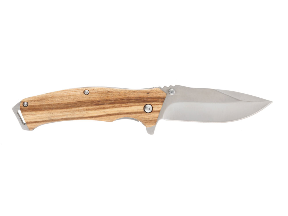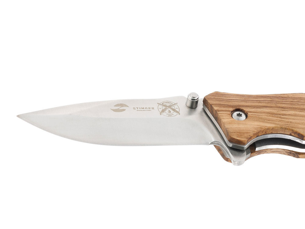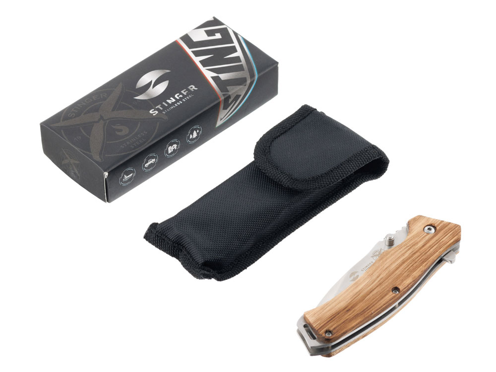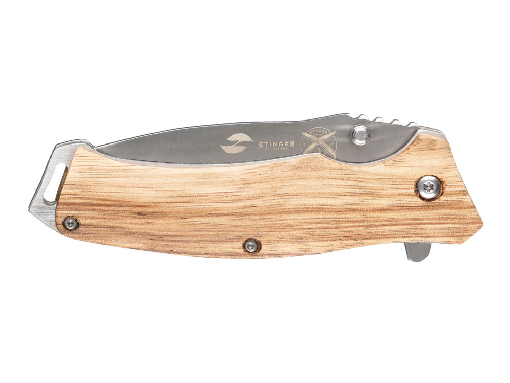 Нож складной Stinger, 110 мм, (серебристый), материал рукояти: дерево/сталь (светло-коричневый), 441167