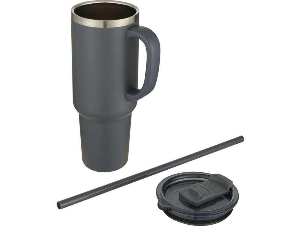 Sydney медная кружка с двойными стенками, сертифицированная согласно RCS, с вакуумной изоляцией и соломинкой, 1200 мл - Серый, 10080282