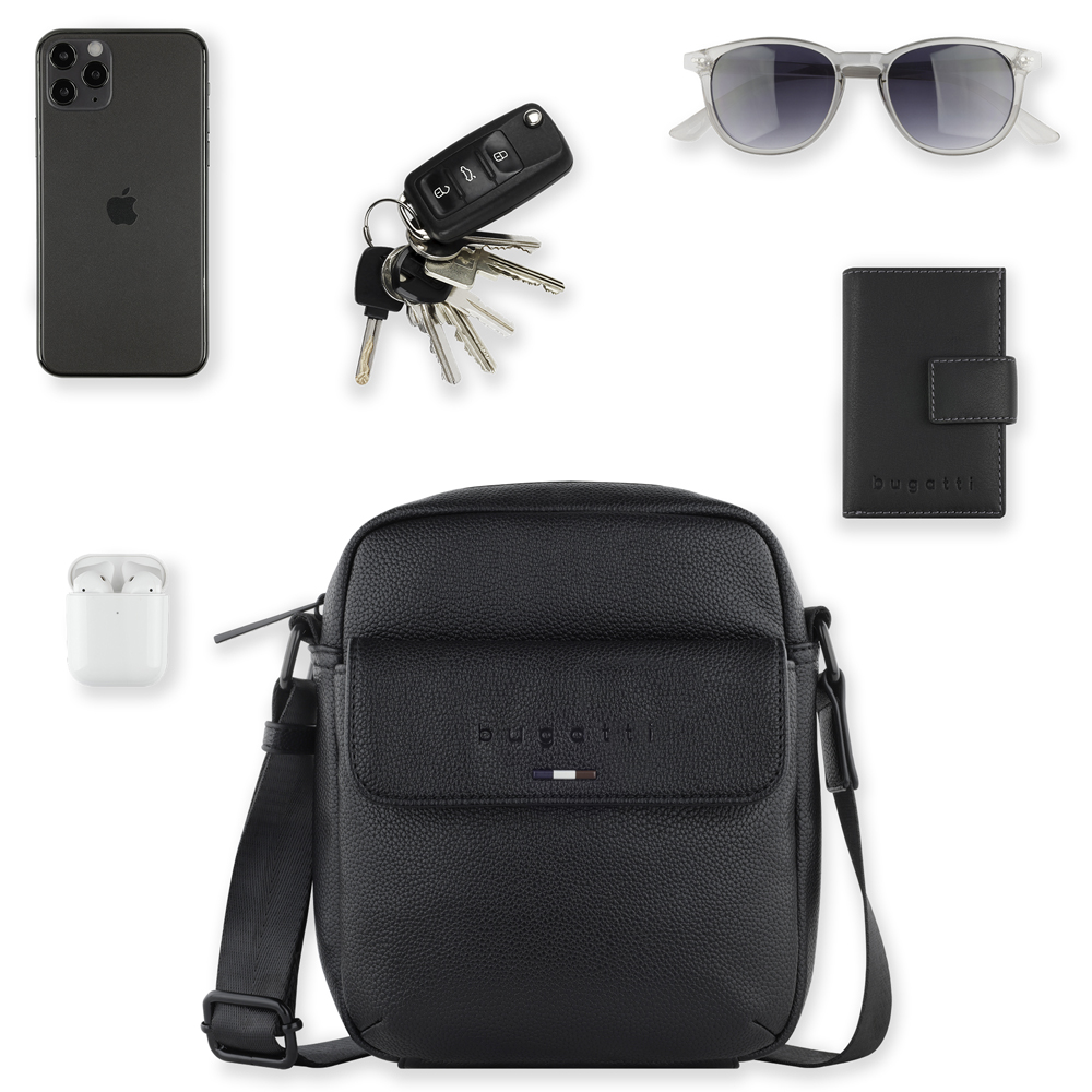 Сумка наплечная мужская BUGATTI РИКО | RICO, черный, полиуретан, 19 x 7 x 21 см, 49470601