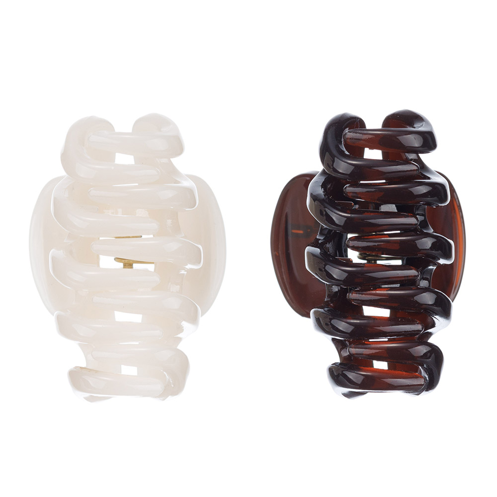 Мини заколка-краб Dewal Beauty 2 шт/ уп., цвет шоколадный/молочный, 3001BD