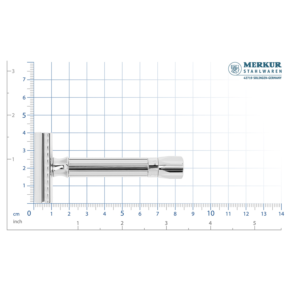 Станок Т-образный для бритья MERKUR 500 PROGRESS, глянцевое хромированное покрытие, прямой срез, закрытый гребень, лезвие в комплекте (1 шт), 500101