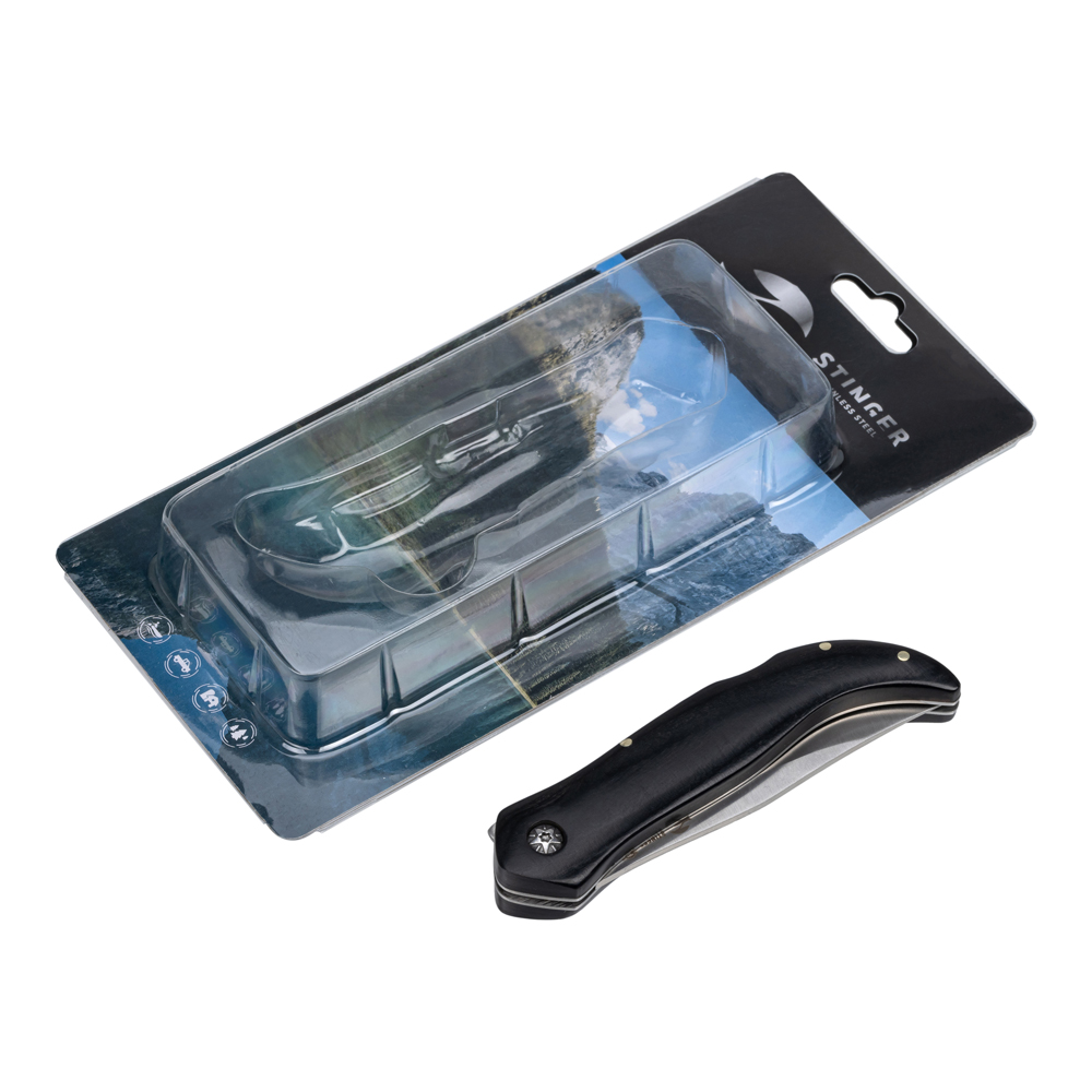 Нож складной Stinger, 101 мм (серебристый), материал рукояти:древесина черного дерева (черный), FB619B-SB