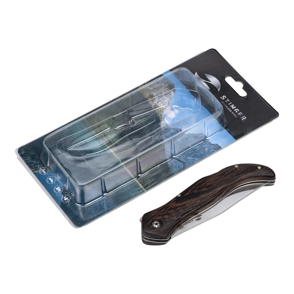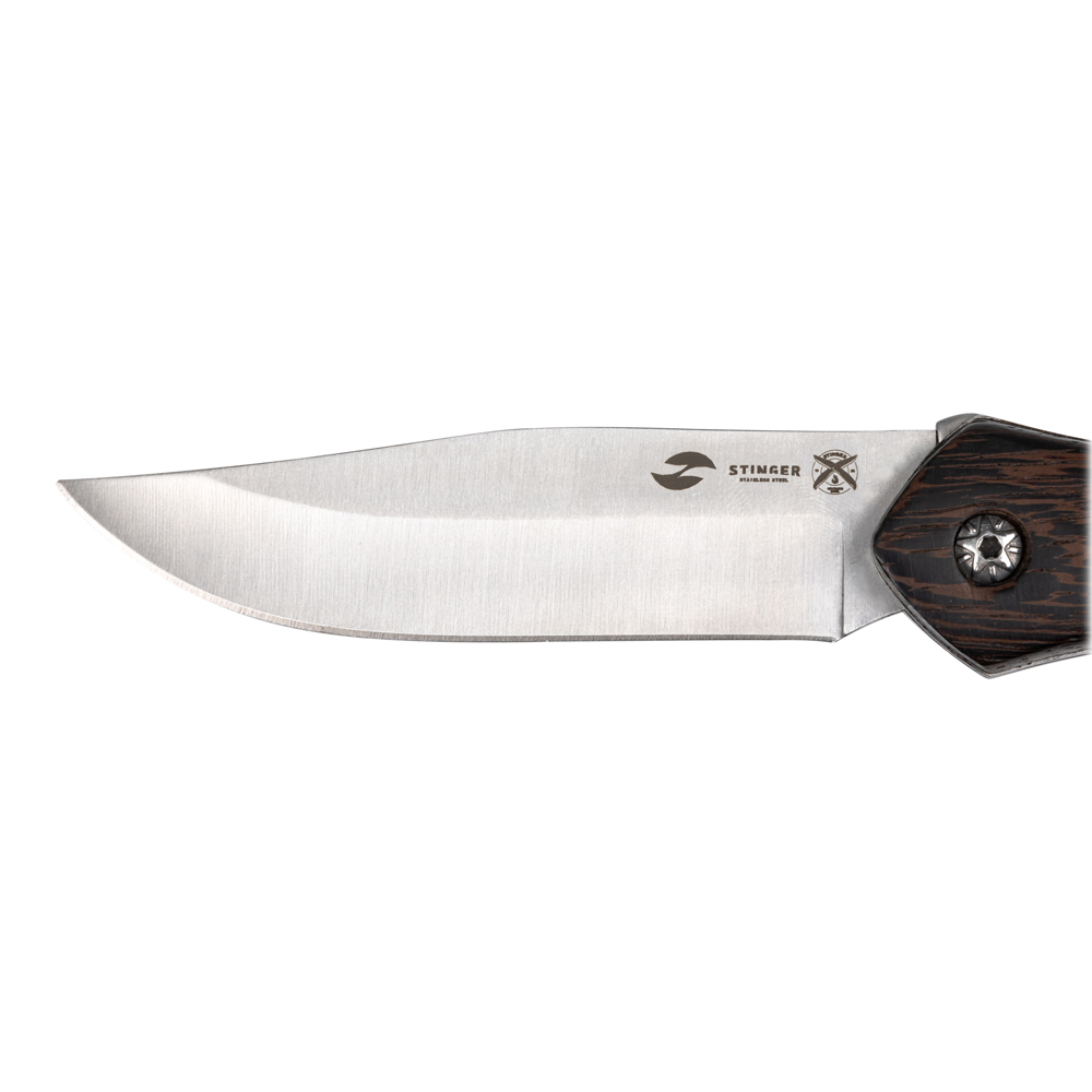 Нож складной Stinger, 105 мм (серебристый), материал рукояти: древесина венге (коричневый), FB619A-SB