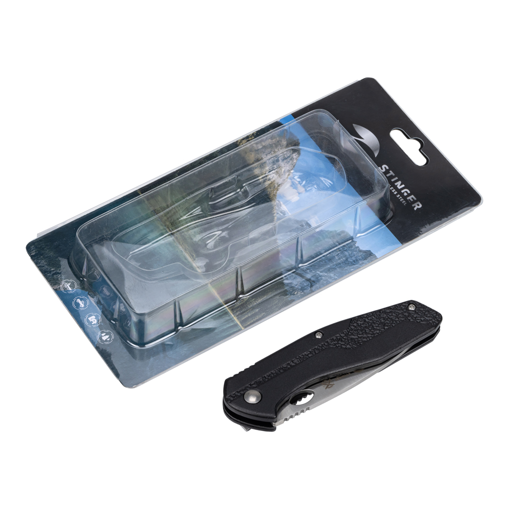Нож складной Stinger, 95 мм (серебристый), материал рукояти: алюминий (чёрный), FB2023-SB