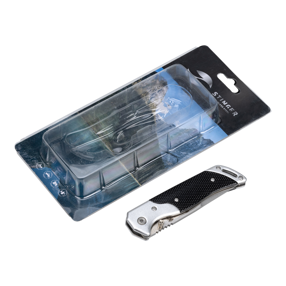 Нож складной Stinger, 90 мм (серебристый), материал рукояти: алюминий (чёрно-серебристый), FB1201-SB