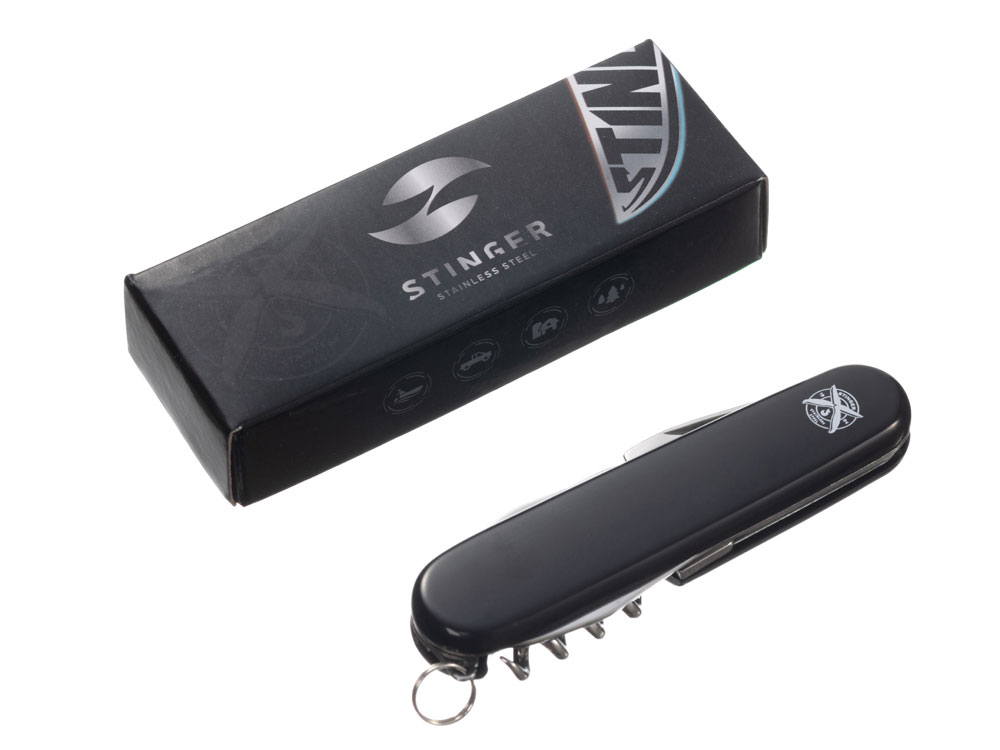 Нож перочинный Stinger, 90 мм, 10 функций, материал рукояти: АБС-пластик (чёрный), 441142