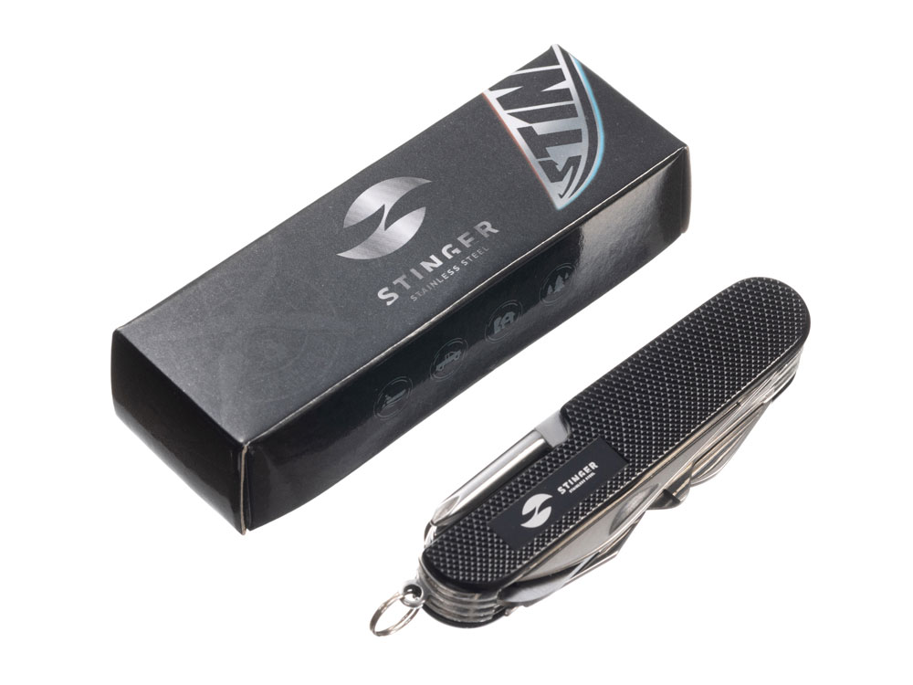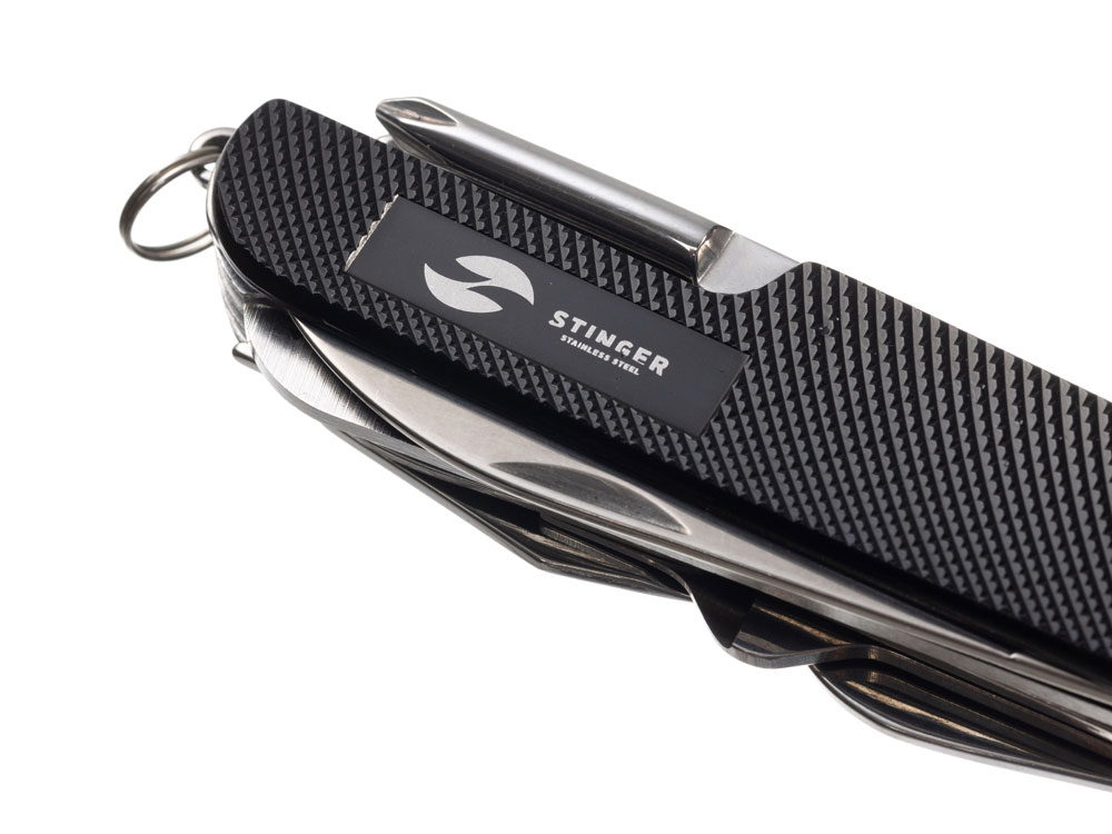 Нож перочинный Stinger, 89 мм, 15 функций, материал рукояти: алюминий (чёрный), 441145