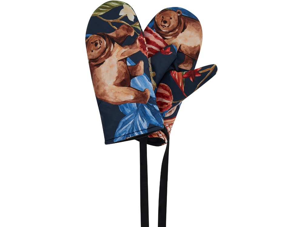 Принт Мишки в шоколаде продолжает серию сказочных принтов Varvara. Задорные медвежата прячутся в листьях и плодах вечнозеленого какао, создавая яркий, эмоциональный узор.