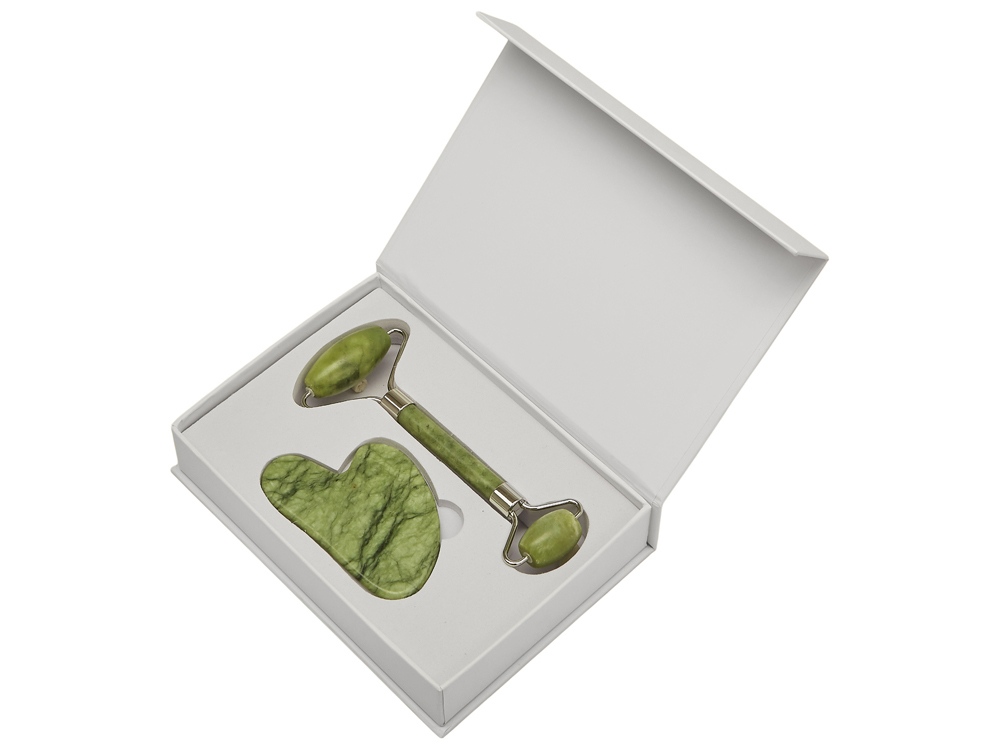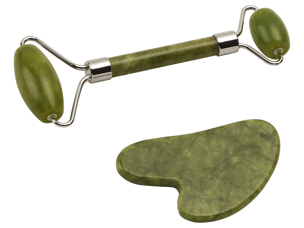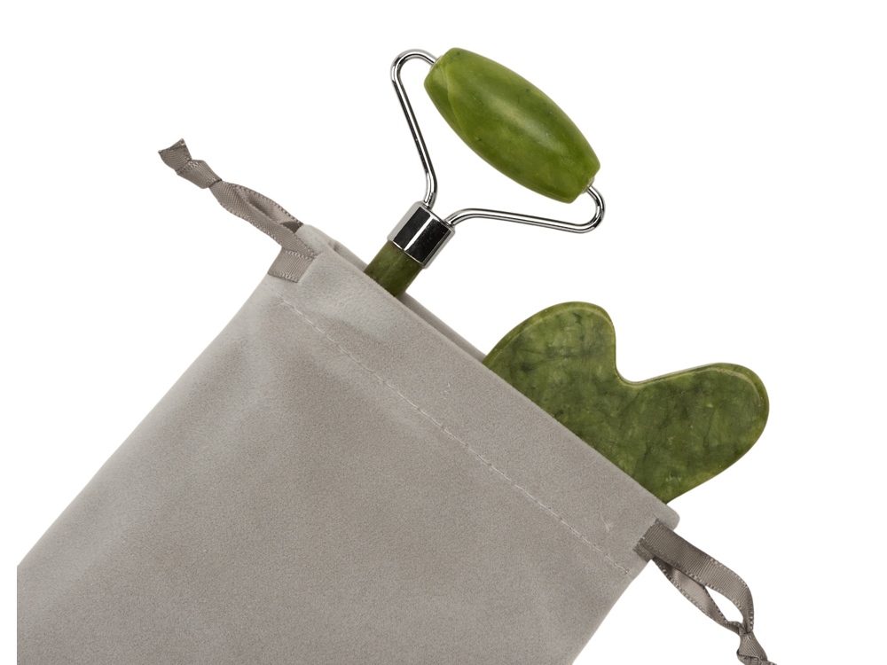 роллер и гуаша из натурального нефрита, мешочек для хранения и переноски |