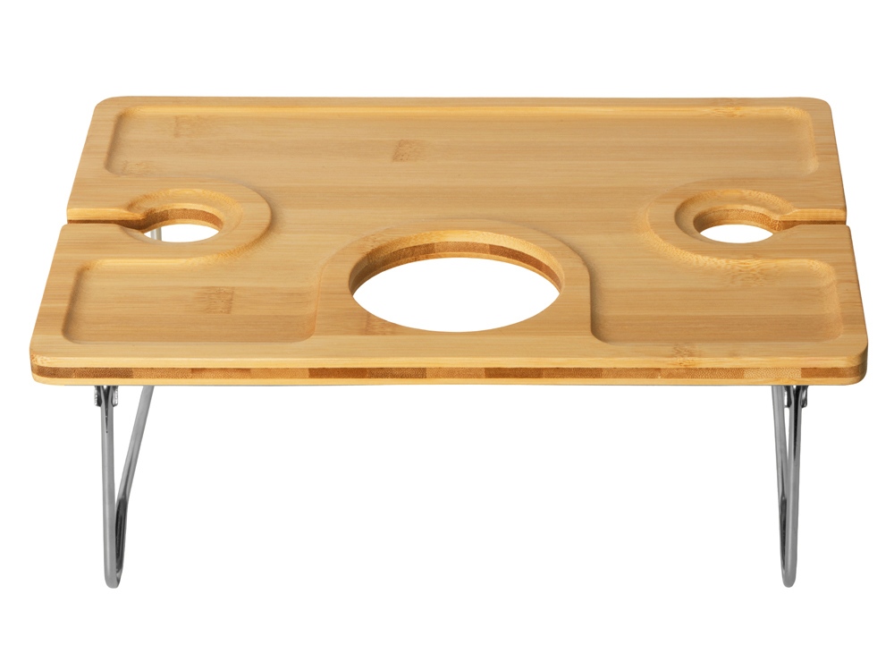 Представьте, как вы наслаждаетесь закатом с бокалом любимого вина, не беспокоясь о том, что его можно опрокинуть. Этот элегантный столик оснащен двумя специальными углублениями для надежной фиксации бокалов, а центральное отверстие идеально подходит для устойчивой установки бутылки.