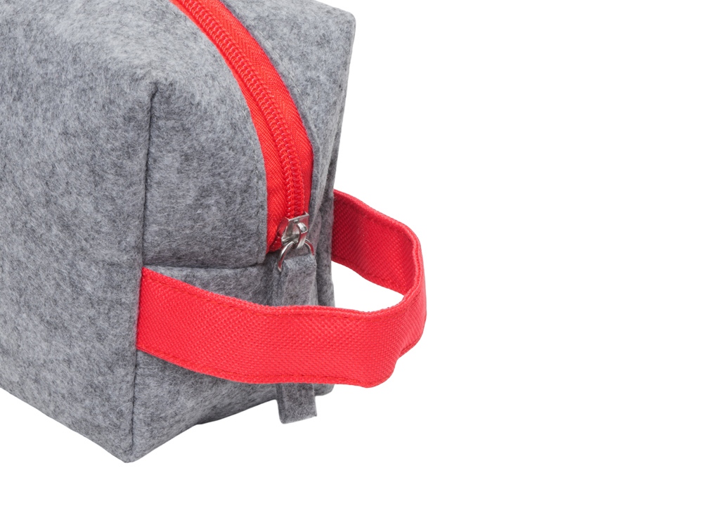 Косметичка из РПЕТ фетра с ручкой Felt, серый с красным, 839524