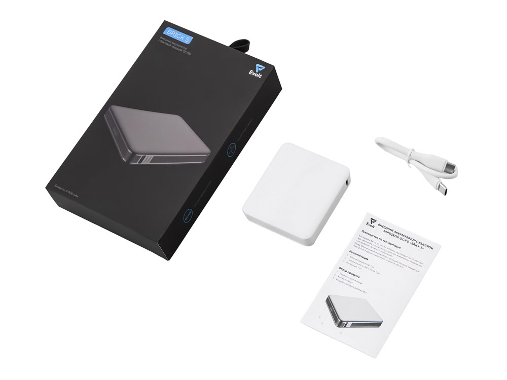 Внешний аккумулятор Brick 5 с быстрой зарядкой PD, 5000 мАч, белый , размер 5000 mAh, 392306