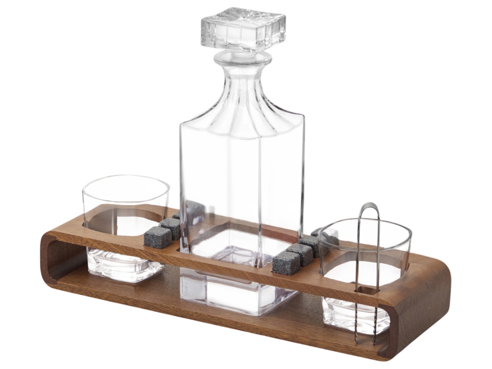 подставка, графин, бокалы, щипцы, мешочек, камни для виски |