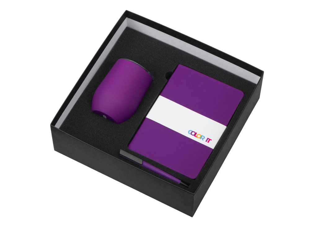 Подарочный набор c блокнотом C2, ручкой и термокружкой, фиолетовый , размер твердая обложка, 209836