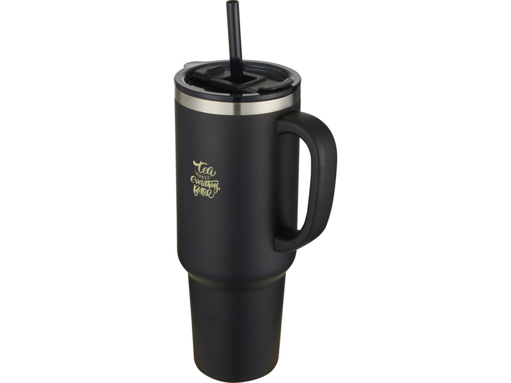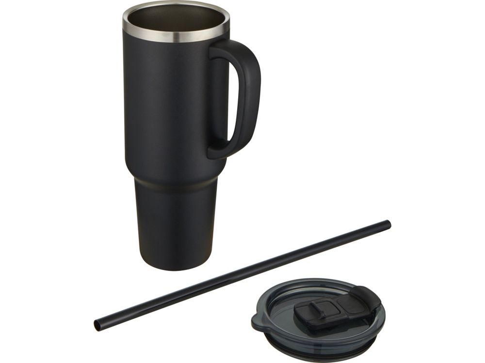 Sydney медная кружка с двойными стенками, сертифицированная согласно RCS, с вакуумной изоляцией и соломинкой, 1200 мл - сплошной черный, 10080290