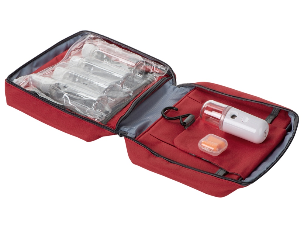 несессер- полиэстер, увлажнитель- пластик, емкости- ПВХ, беруши- полиуретан |