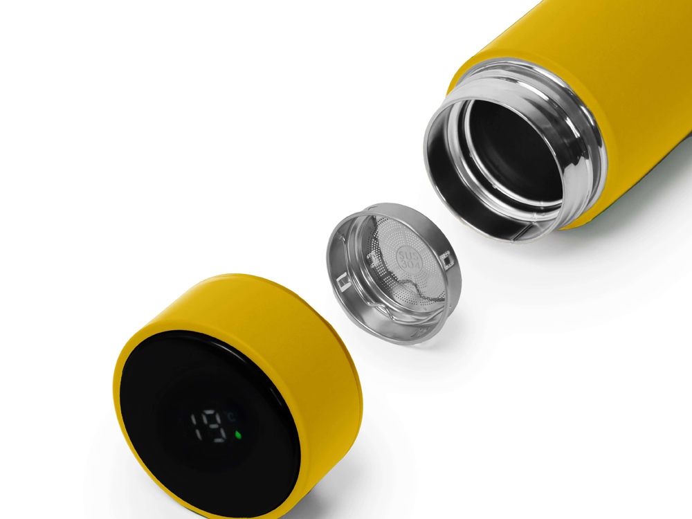 Термос FAMILY MARK LED, soft touch (Жёлтый), 255055