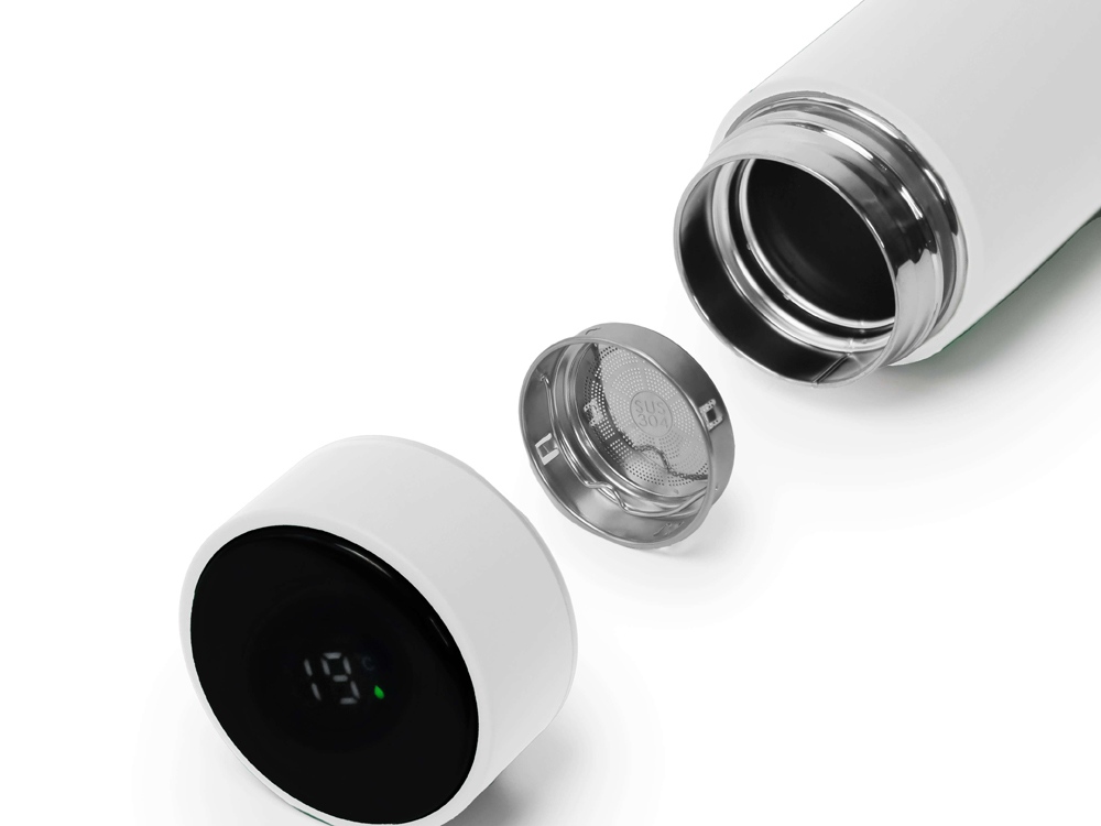 термос, датчик температуры в крышке, ситечко, упаковка. |