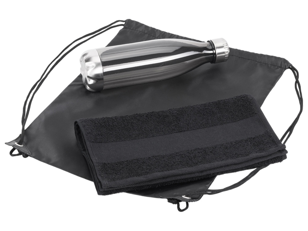 Спортивный набор с бутылкой и полотенцем Beginner, черный, 700537.07