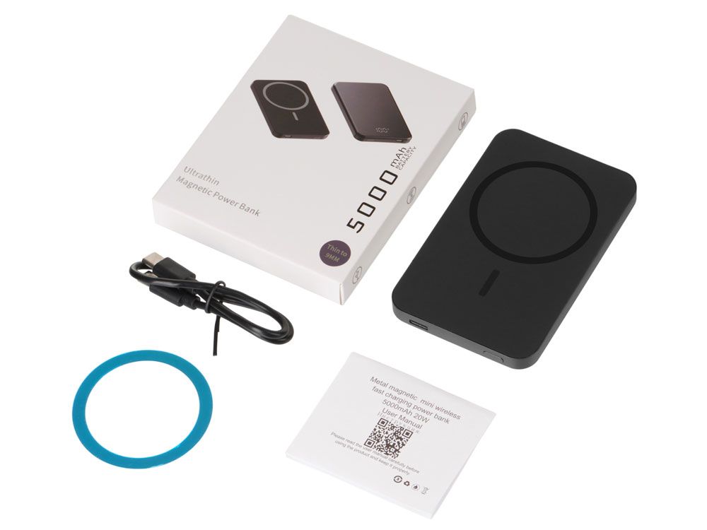внешний аккумулятор, зарядный кабель Type-C, металлическое кольцо, инструкция |