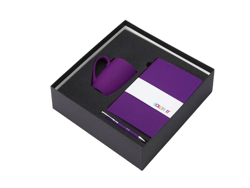 Подарочный набор с блокнотом С2, металлической ручкой и кружкой, фиолетовый , размер твердая обложка, 350092.09