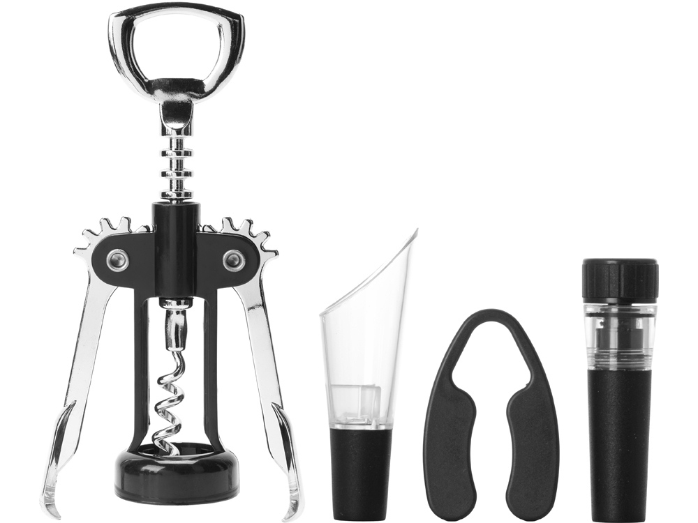 механический штопор 17 х 5,3 х 3,7 см, винная пробка 2, 5 x 1,7 x 8,5 см, аэратор 3 x 1 x 9,5 см, нож для фольги 7 x 4,5 x 0,9 см |