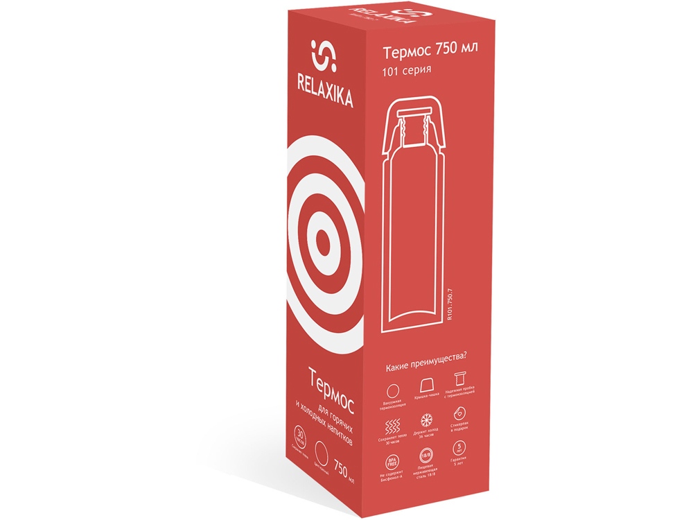 Термос Relaxika 101 (0,75 литра), красный (без лого) , размер 750, 810775