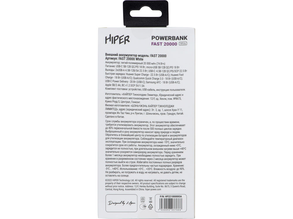 Портативный внешний аккумулятор FAST 20000 White (Р), 521014p