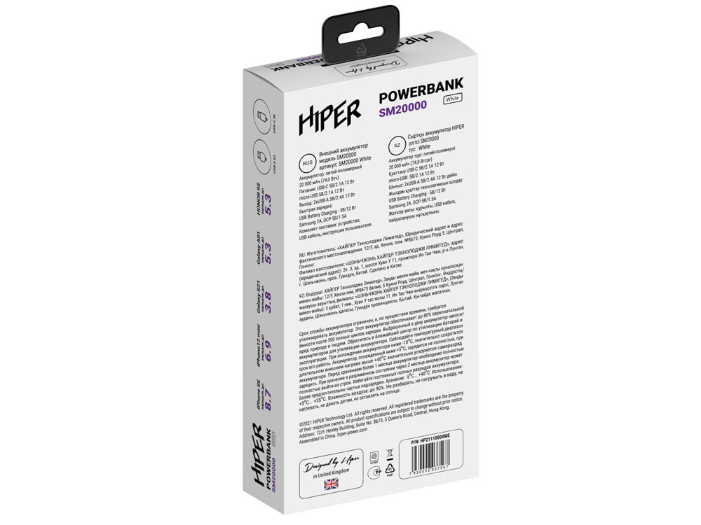 Портативный внешний аккумулятор SM20000 White (Р), 521024p