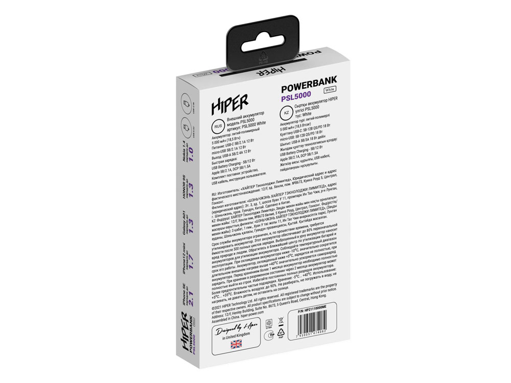 Портативный внешний аккумулятор PSL5000 White (Р), 521036p