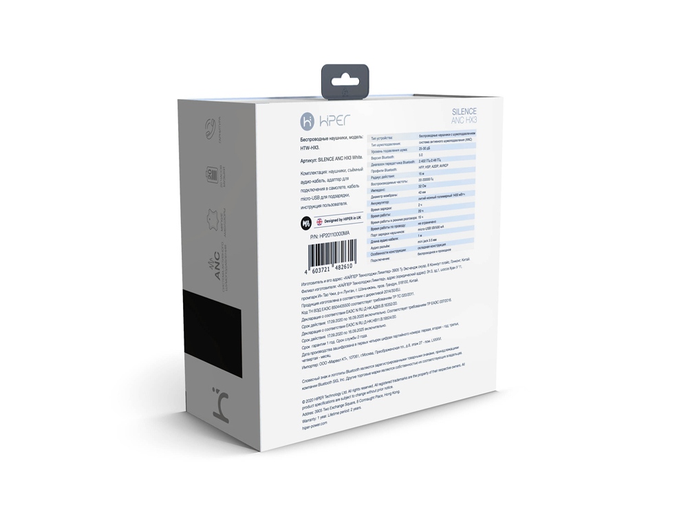 Для качественного звука используются 40-миллиметровые динамики, а сам аксессуар работает на стандартных частотах в диапазоне от 20 до 20000 Гц. Hiper Silence ANC HX3 быстро подключается к мобильным девайсам по беспроводному интерфейсу Bluetooth 5.0 и не теряют соединение на расстоянии до 15 м. При желании можно воспользоваться обычным кабелем, для чего на корпусе предусмотрен разъём 3,5 мм.