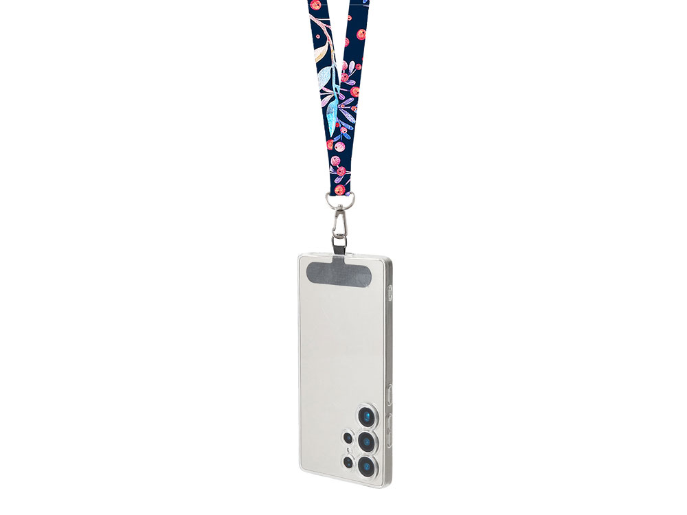 Ланъярд 2 см под сублимацию с трендовым карабином и узким держателем для телефона из ПЭ, серебристый, 828807