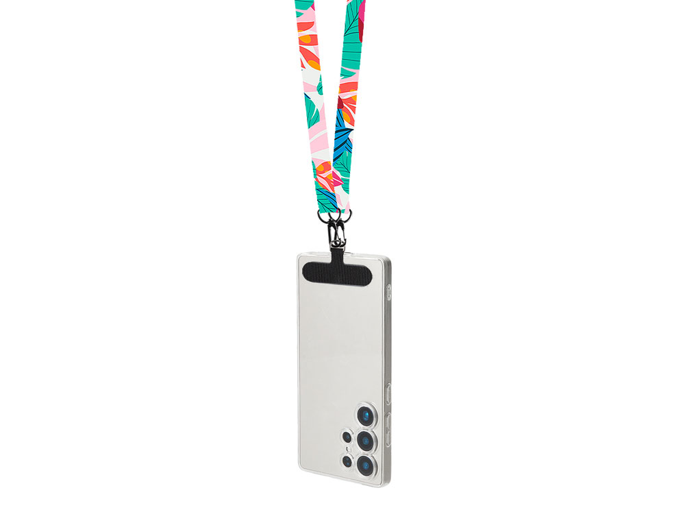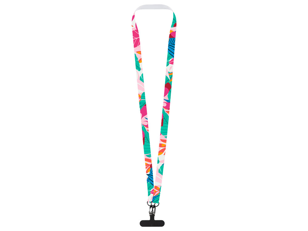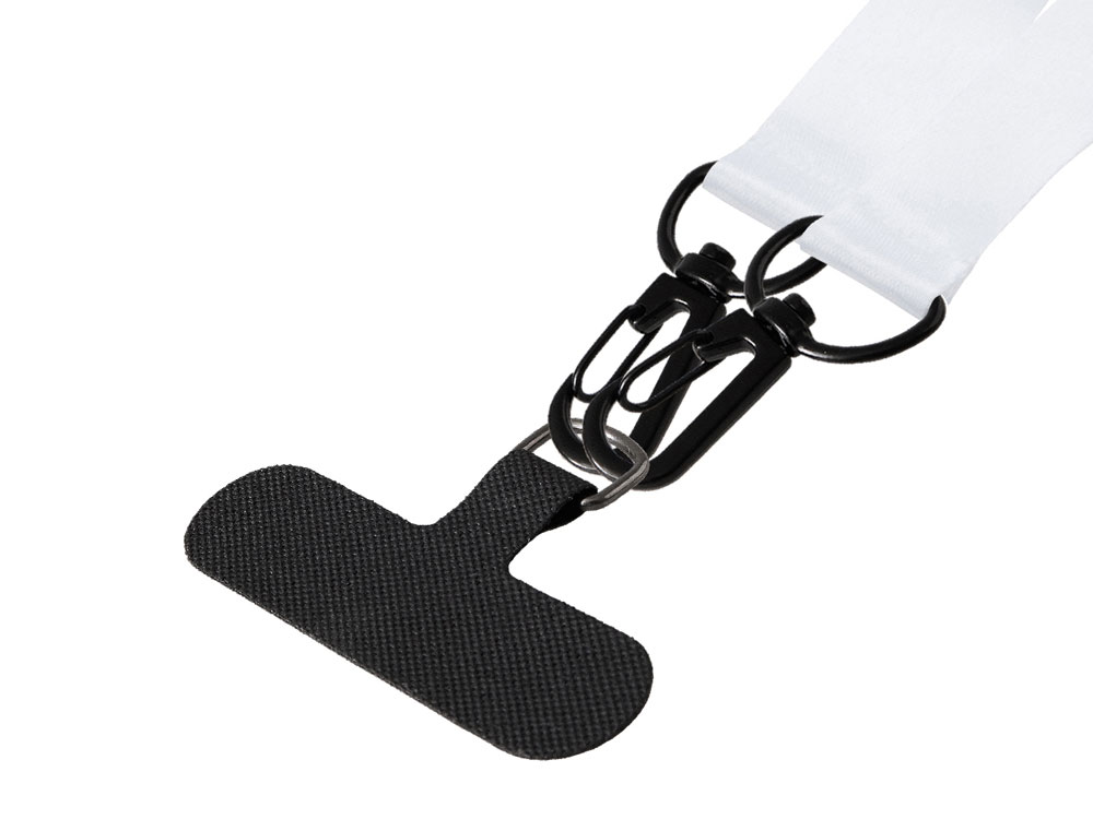 Ланъярд 2 см под сублимацию с 2-мя трендовыми карабинами и узким держателем для телефона из ПЭ, черный, 828815