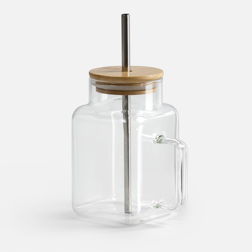 боросиликатное стекло; крышка - бамбук; трубочка - металл |