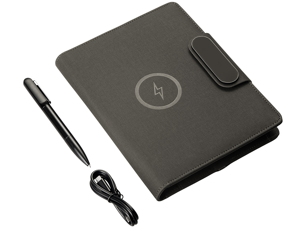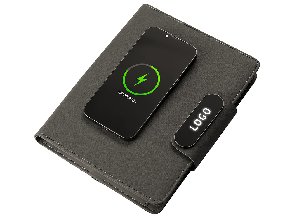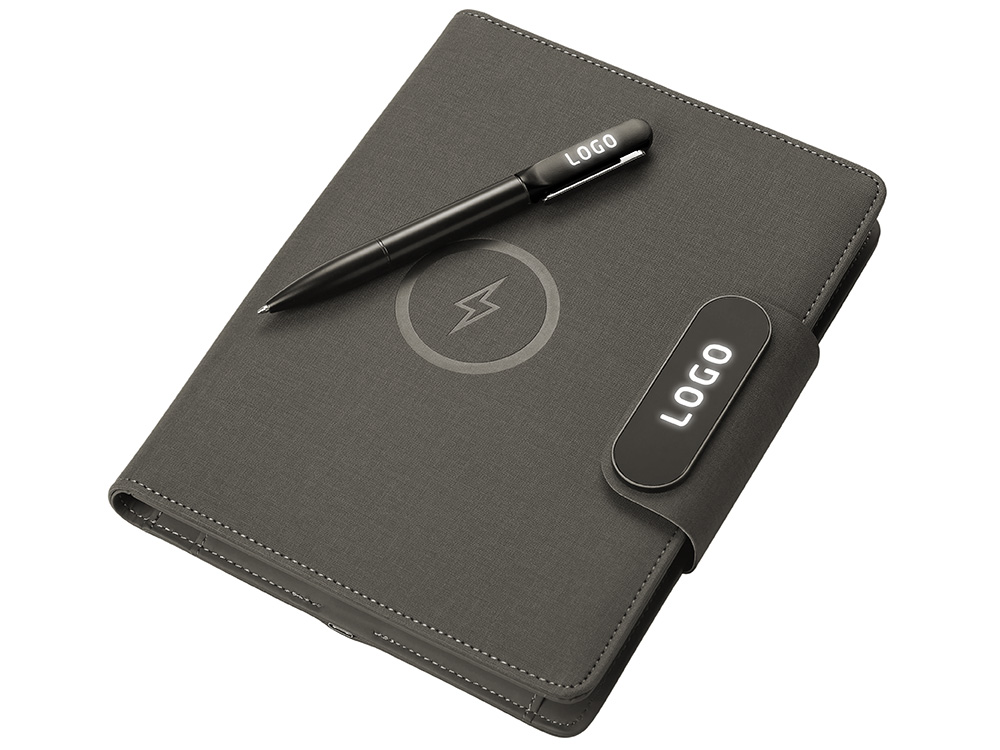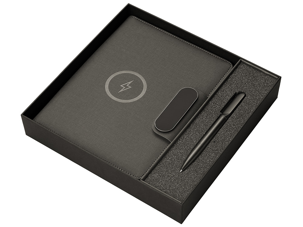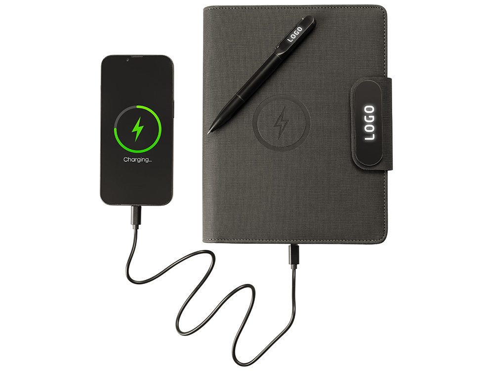 Подарочный набор металлическая ручка и блокнот А5 Twilight со светящимся логотипом и пауэрбэнком, 180928