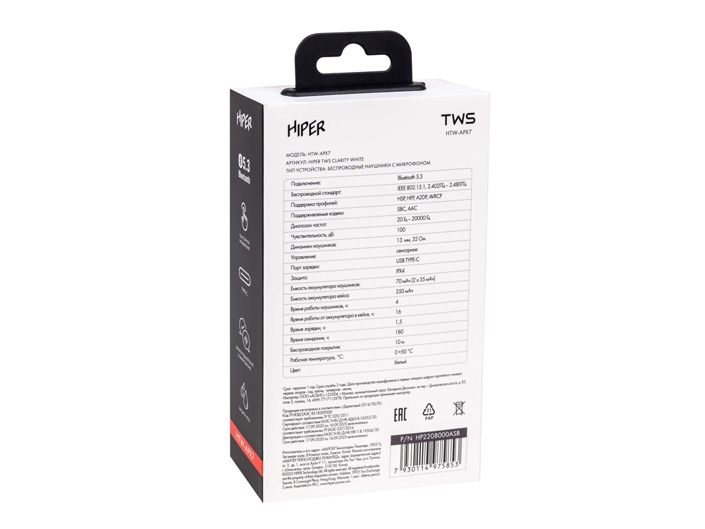 Наушники беспроводные TWS Clarity с шумоподавлением ENC, белый, 521114