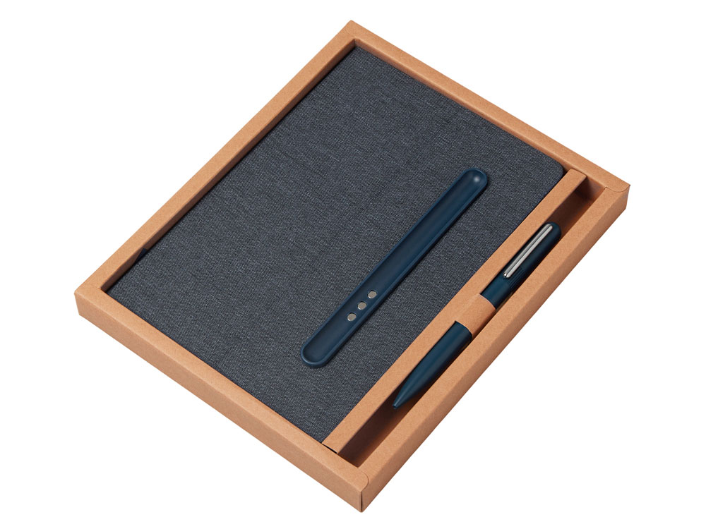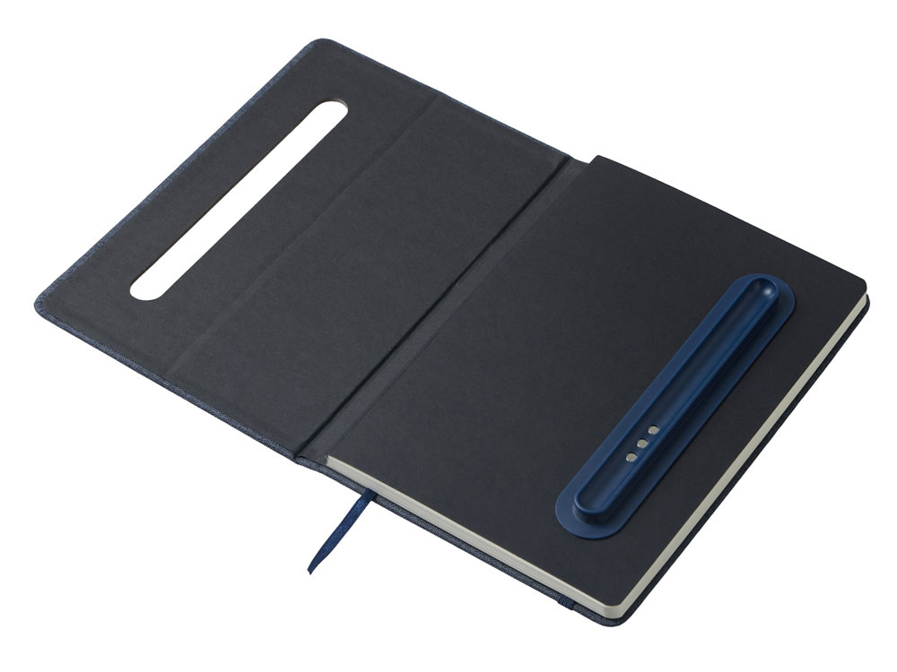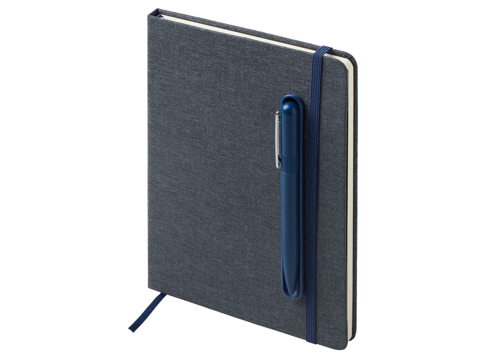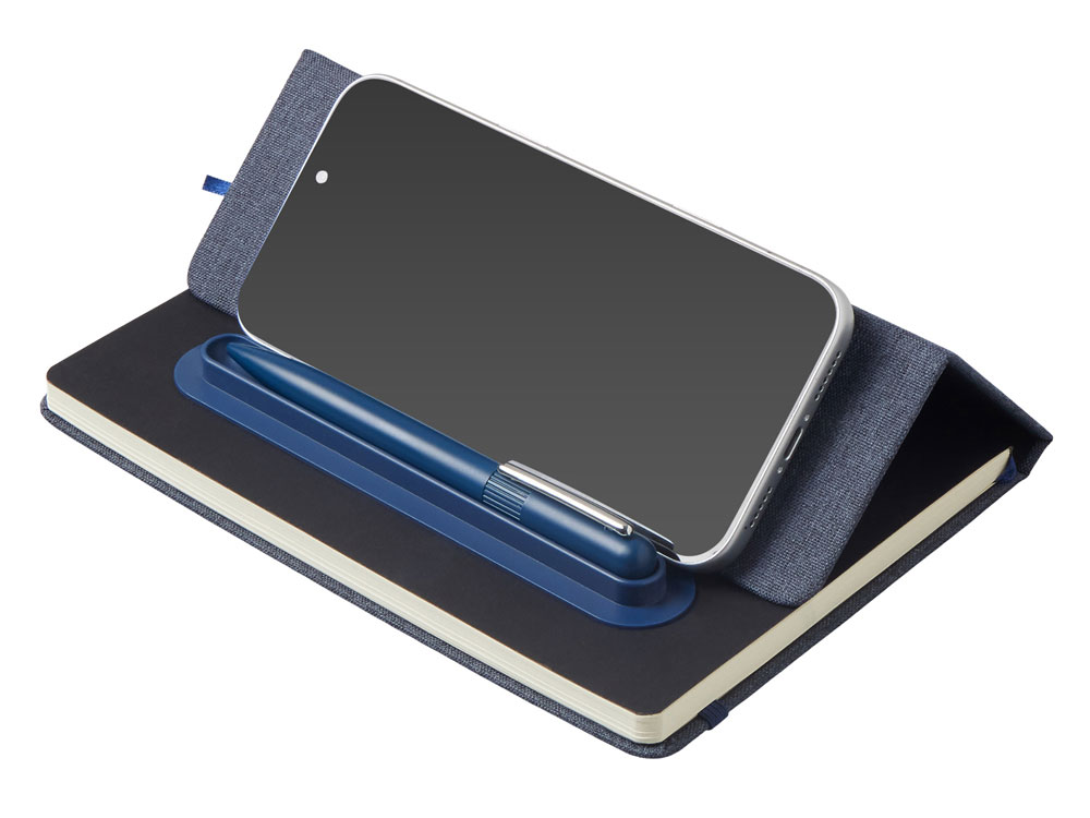 Набор блокнот А5 с магнитным держателем для ручки и подставкой для телефона и металлической шариковой ручкой NotaBene, темно-синий, 180938.02