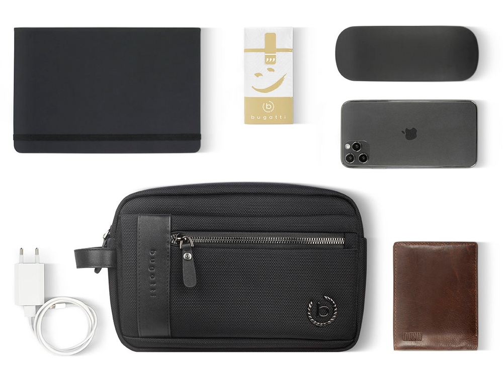 Несессер мужской BUGATTI НЕРО | NERO, чёрный, нейлон 1680D/кожа, 24х7,5х16 см, 49640401