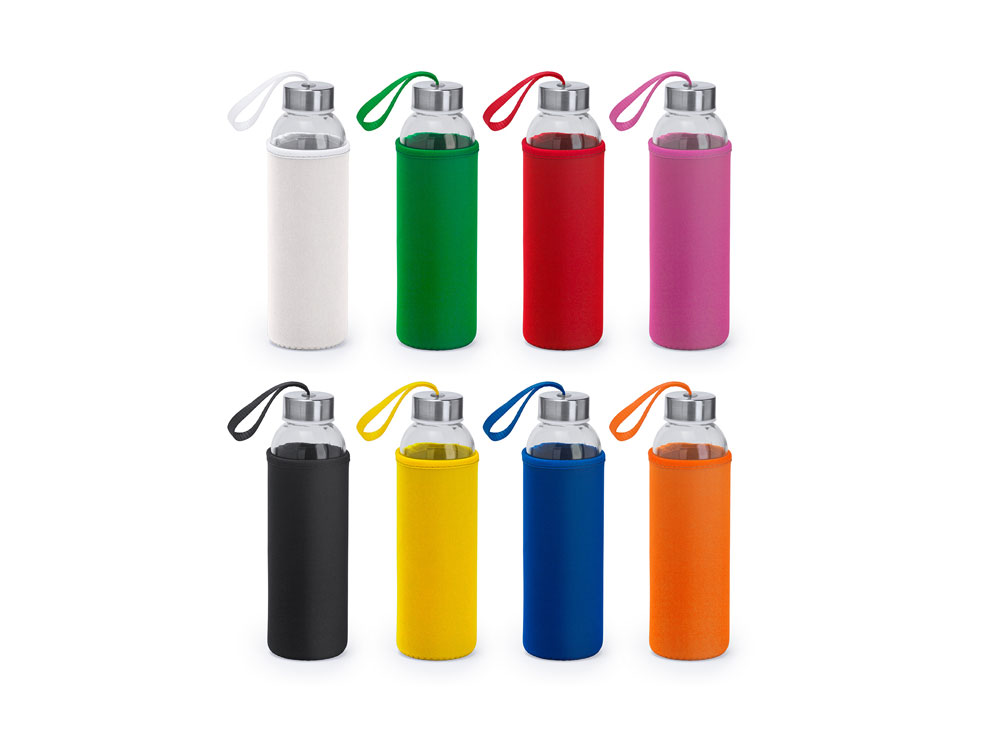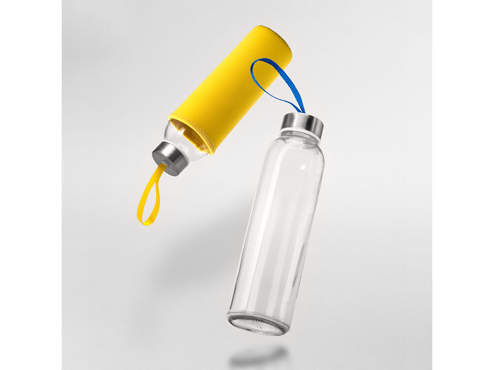 Бутылка стеклянная CAMU в чехле из неопрена, 500 мл, прозрачный/желтый, MD4040S103