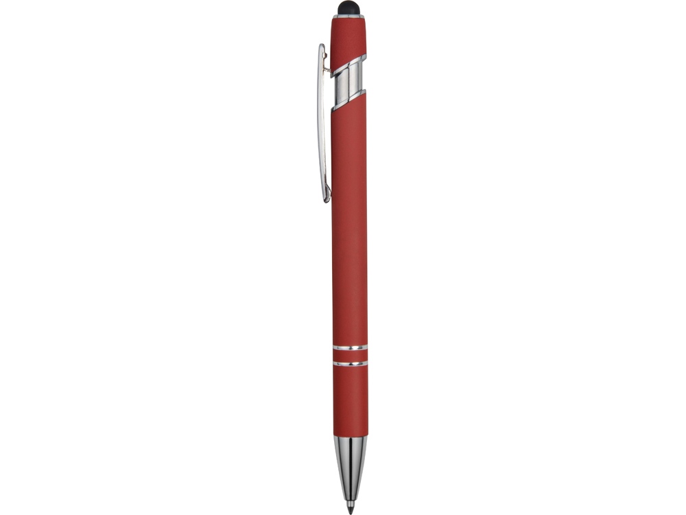 Ручка металлическая soft-touch шариковая со стилусом Sway, красный/серебристый, 18381.01