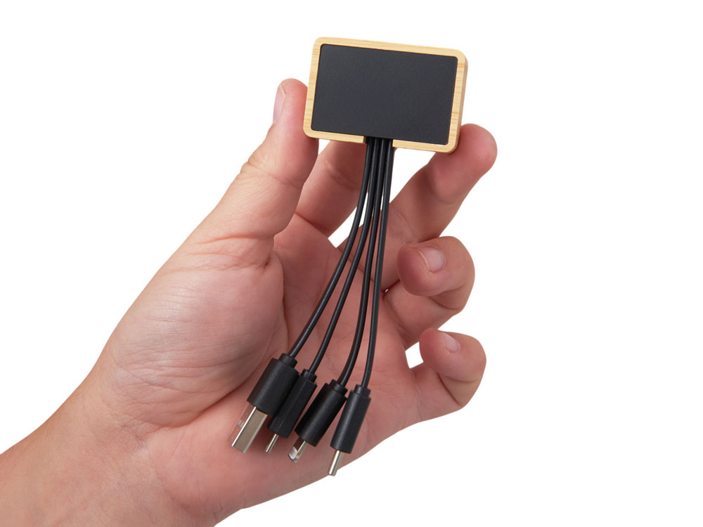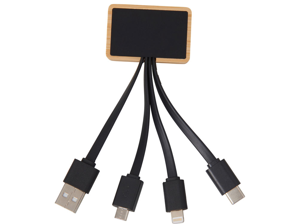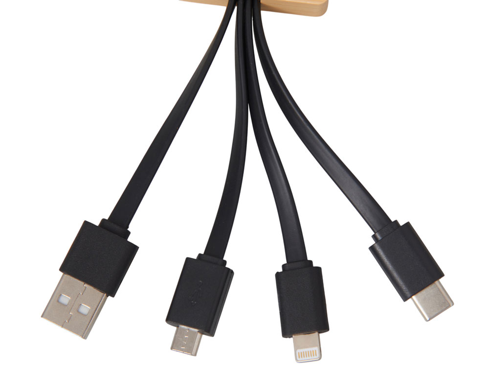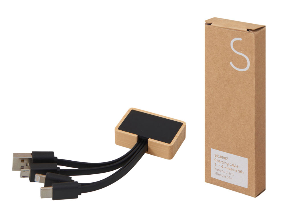 Кабель 3-в-1 с подсветкой лого Reedia S6, бамбук, черный, 5910987