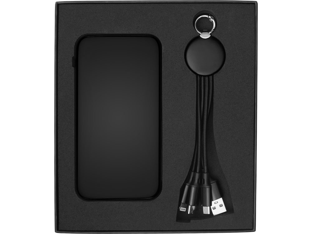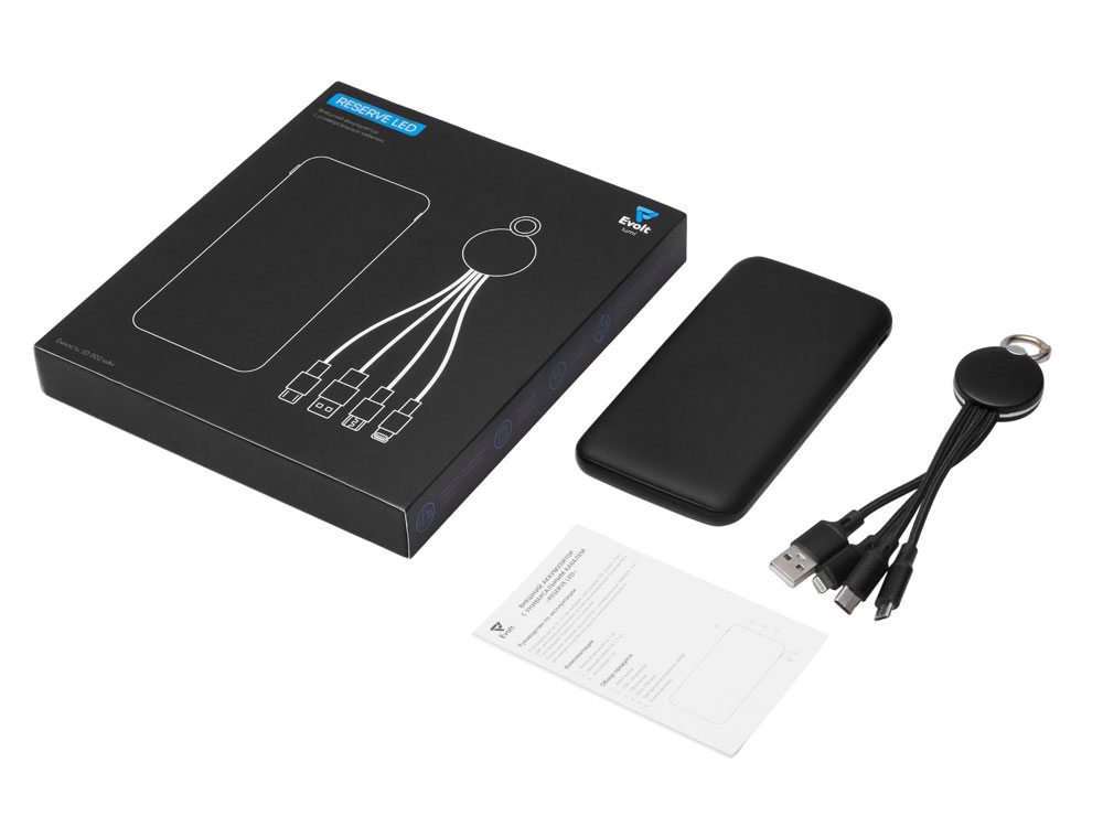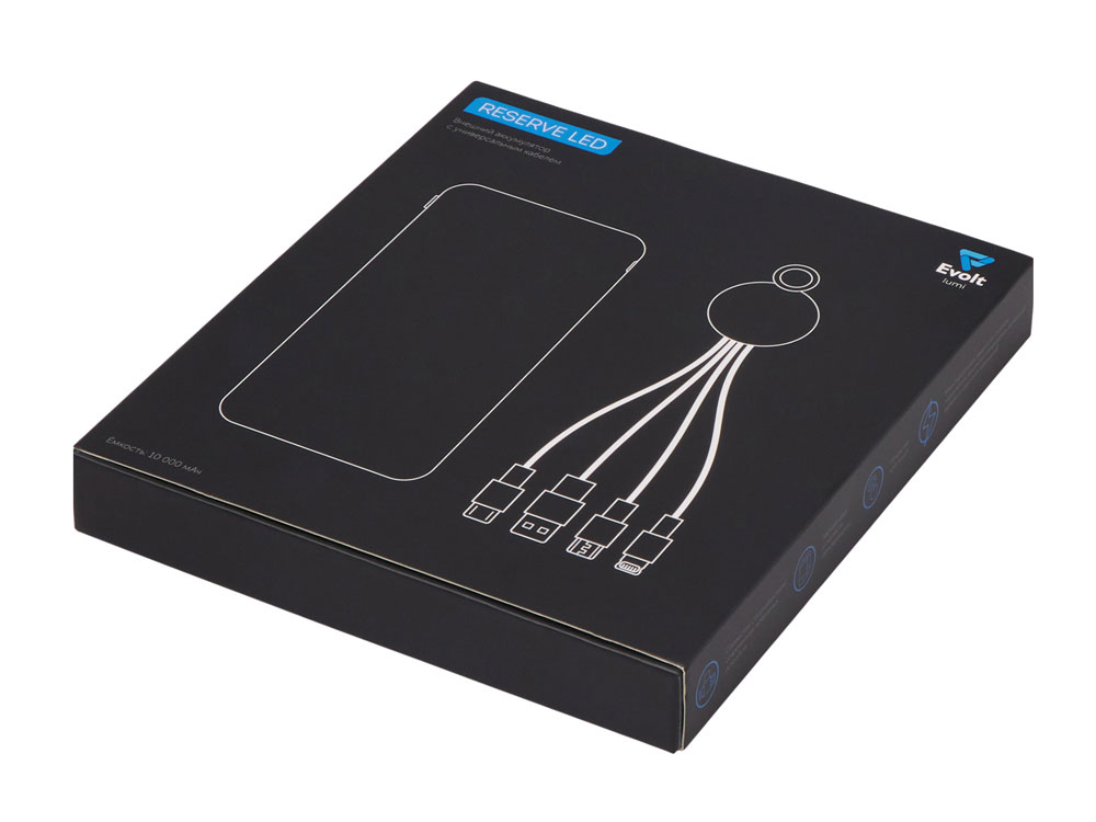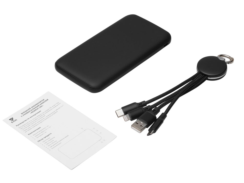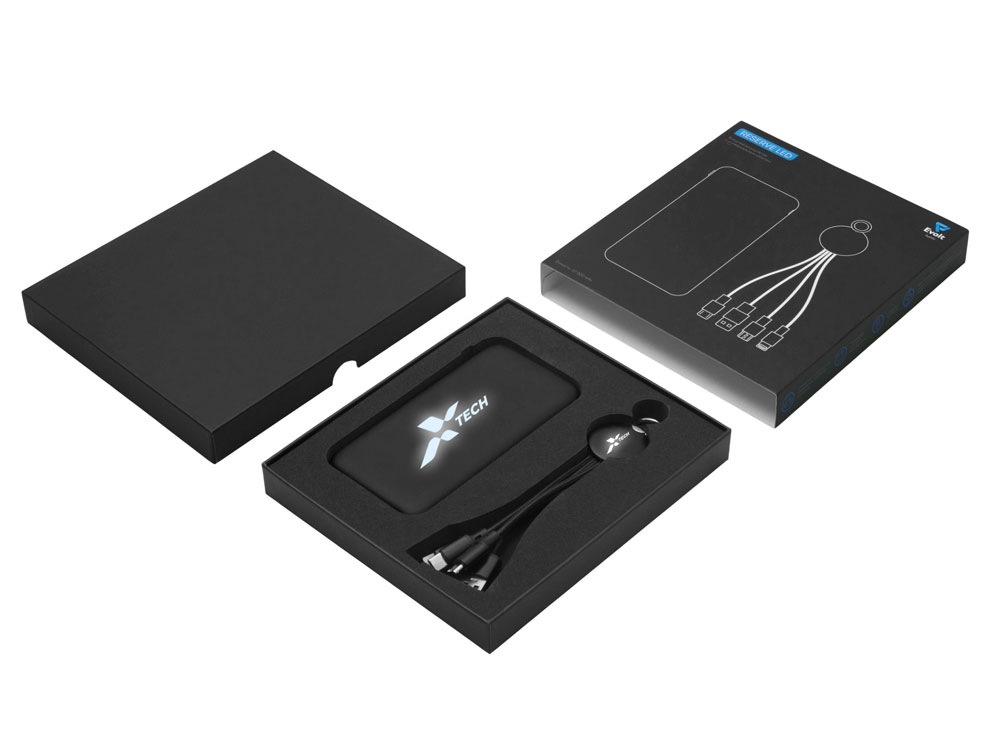 Набор из внешнего акуумулятора и универсального кабеля с подсветкой лого Reserve LED, 10000mAh, черный, 427319