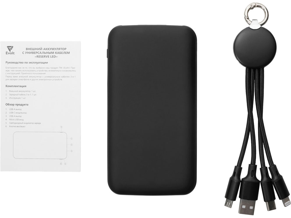 внешний аккумулятор, зарядный кабель 3-в-1, инструкция |