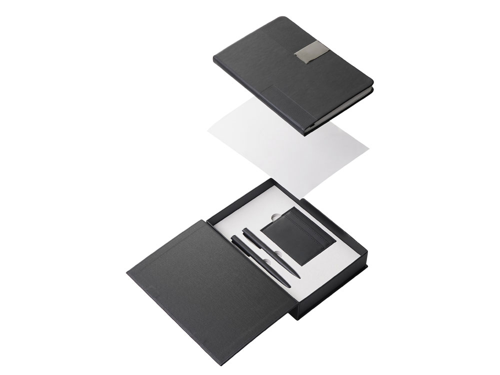 Подарочный набор Goethe с блокнотом А5, 2-мя ручками и картхолдером, черный, 181023