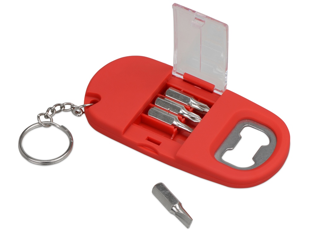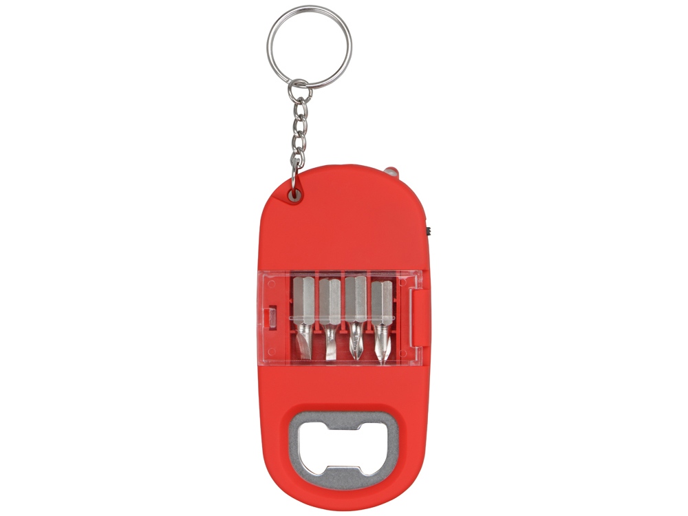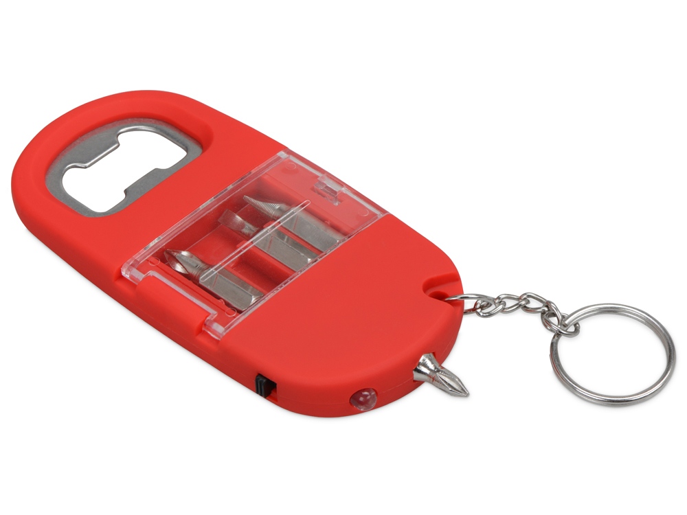 Брелок-открывалка с отвертками и фонариком Uni, софт-тач, красный, 716321